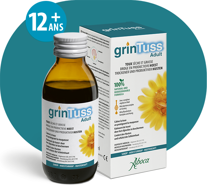 Grintuss Adult sirop est indiqué pour le traitement de la toux, sèche et grasse, chez les adultes et les adolescents âgés de plus de 12 ans. Il est indiqué aussi bien pour la toux en phase aiguë qu’en cas de toux persistante.